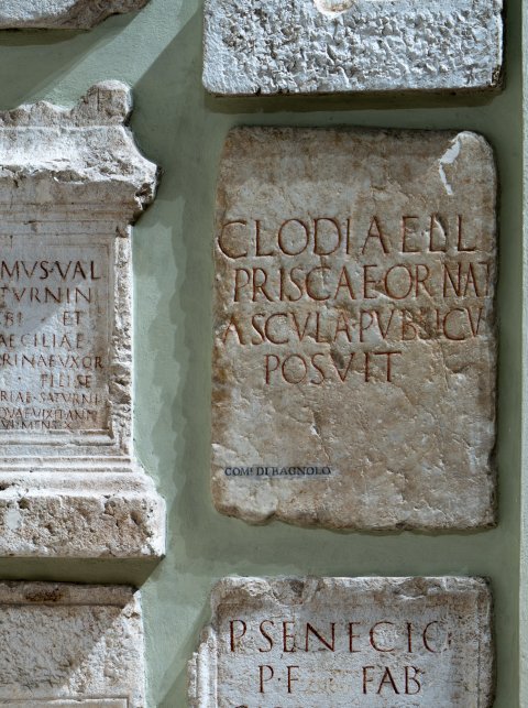 - Clodiae L(uci) l(ibertae) / Priscae ornat(rici) / Ascula (servus) publicu(s) / posuit