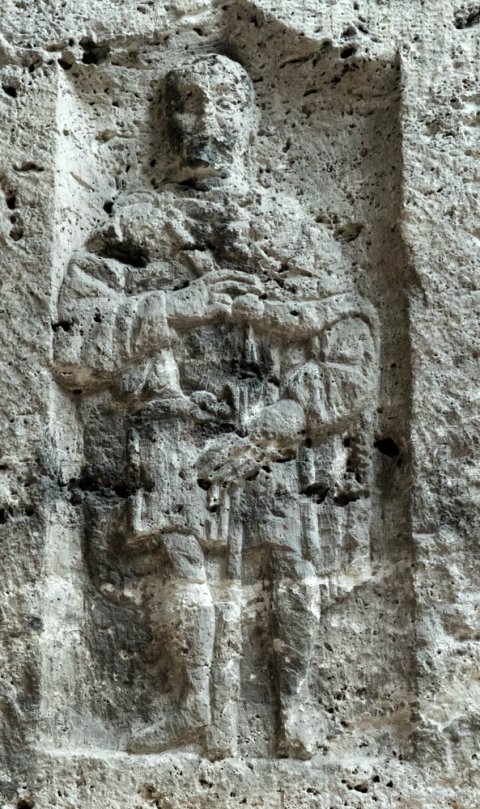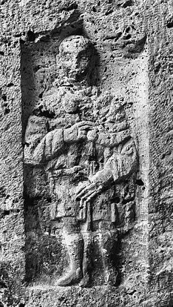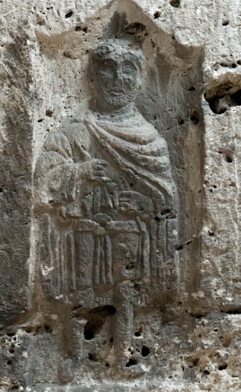 - Tracht (Gürtel mit Ringschnalle, Sagum mit Scheibenfibel), Gentilname Septimia