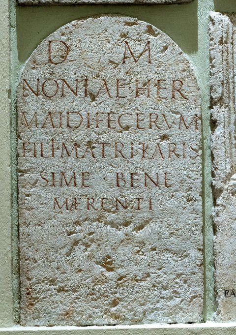 - D(is) M(anibus) / Noniae Her/maidi fecerum(!) fili(i) matri karis/sim(a)e bene / merenti