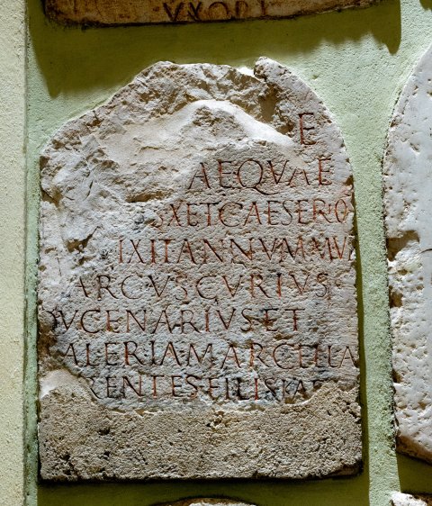 - [---]ae / [---]ae quae / [vix(it) anno]s X et Caeserio / [qui v]ixit annum m(enses) VI / Marcus Curius / ducenarius et / Valeria Marcella / [pa]rentes fili(i)s kari[s]s(imis)