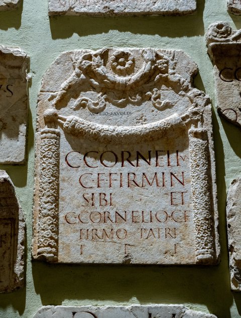 - C(aius) Cornelius / C(ai) f(ilius) Firmin(us) / sibi et / C(aio) Cornelio C(ai) f(ilio) / Firmo patri / t(estamento) f(ieri) i(ussit)