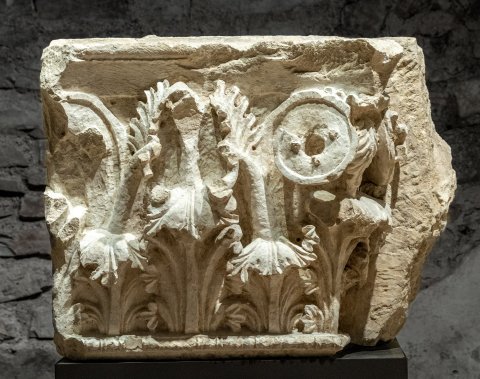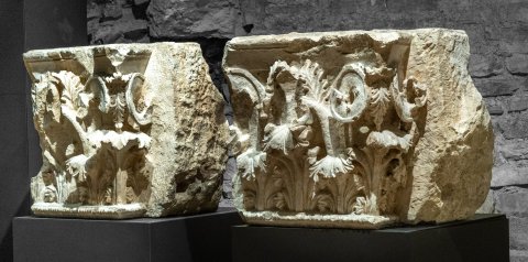 - Pilasterkapitelle mit Akanthusstängeln. Teile einer vorvespasianischen Porticus zwischen Capitol und Theater.