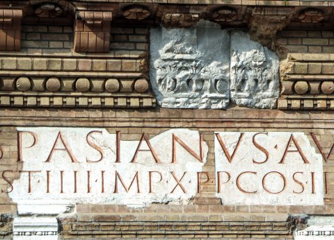 - [Imp(erator) Caes(ar) Ves]pasianus A[u]gust[us] / [pont(ifex) max(imus) tr(ibunicia) pote]st(ate) IV imp(erator) X p(ater) p(atriae) co(n)s(ul) I[II]I censor