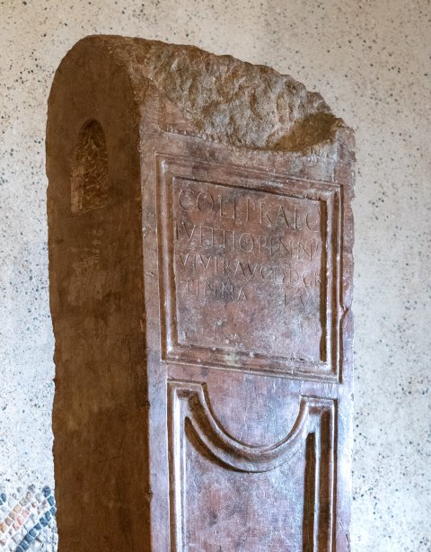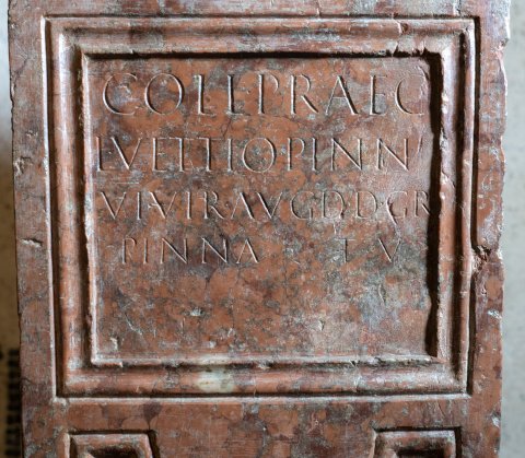 - Coll(egium) praec(onum) / L(ucio) Vettio Pinn(ae) / VIvir(o) Aug(ustali) d(ecreto) d(ecurionum) gr(atuito) / Pinna t(itulo) u(sus)