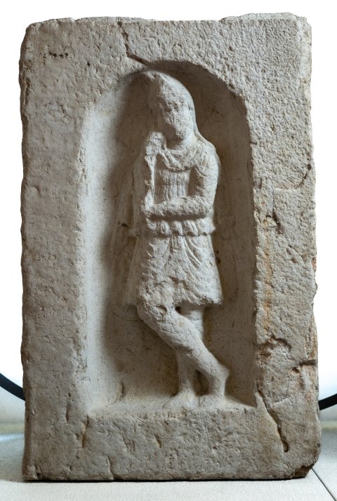 - Mythische Figur: Block von der Einfassung eines Grabbezirks oder aus einem Grabbau (?), auf der Vorderseite Bogennische mit darin stehendem trauernden Attis.