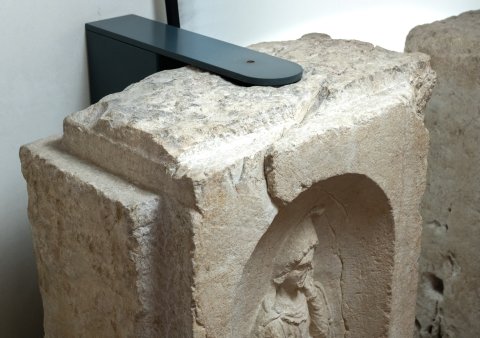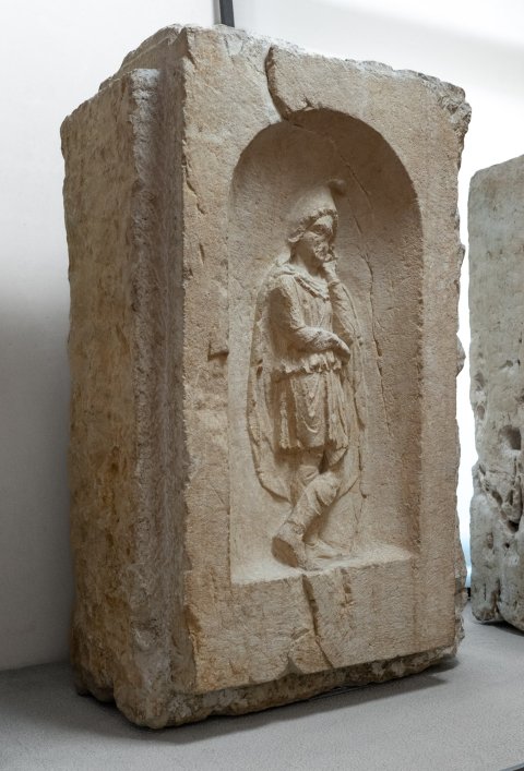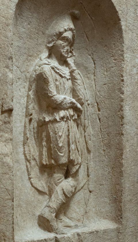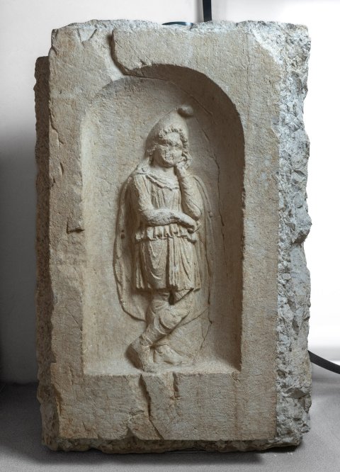 - Mythische Figur: Block von der Einfassung eines Grabbezirks oder aus einem Grabbau (?), auf der Vorderseite Bogennische mit darin stehendem trauernden Attis.