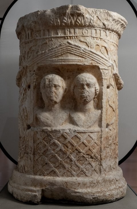 - H. Gabelmann, Oberitalische Rundaltäre, Mitt. d. Dt. Arch. Inst. Röm. Abt. 75, 1968; L. Scalco, Ritratti funerari di famiglia tra Roma e le Alpi 2022, 420 nr. 528