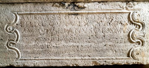 - D(is) M(anibus) // memoriae Valeri(i) Corifi(!) Val(erius) Valerius frater(!) // Aur(elio) Basso Abbosatis / filio qui vixit ann(os) XXVII / Aur(elius) Iulianus proximus / eius / f(aciendum) c(uravit)