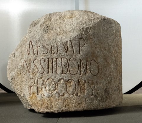 - [Imp(eratori) Caes(ari) d(omino) n(ostro) Fl(avio) Cl(audio) Iulian]o / [P(io) F(elici) victori ac triu]mf(atori) semp[er] / [Aug(usto) p(ontifici) m(aximo) i]mp(eratori) [V]II [c]ons(uli) III bono / [r(ei) p(ublicae) nato p(atri) p(atriae)] procons(uli)