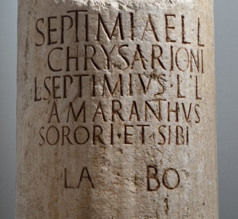 - IIO[I]? / Septimiae L(uci) l(ibertae) / Chrysarioni / L(ucius) Septimius L(uci) l(ibertus) / Amaranthus / sorori et sibi / LA BO