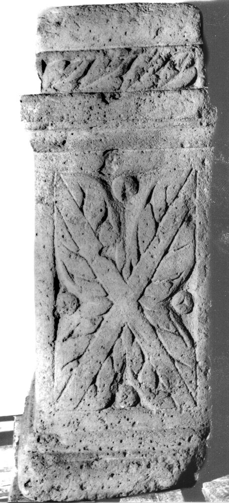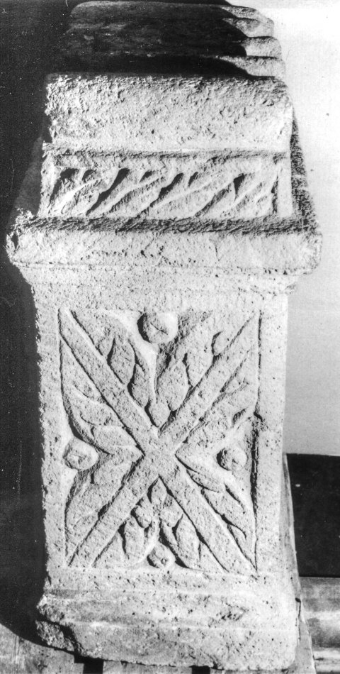 - Giebel mit Blattdekor zwischen pulvini, auf den Nebenseiten Rautengitter mit Blattfüllungen