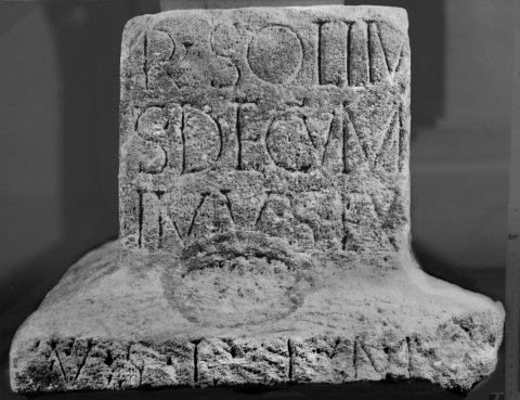 - [I(ovi) O(ptimo) M(aximo) et I(unoni)] // R(eginae) Solliu/s Decum/inius ex // v(oto) s(olvit) l(ibens) l(aetus) m(erito)