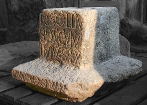 - unterhalb des Inschriftsockels ist ein Viergötterstein anzunehmen