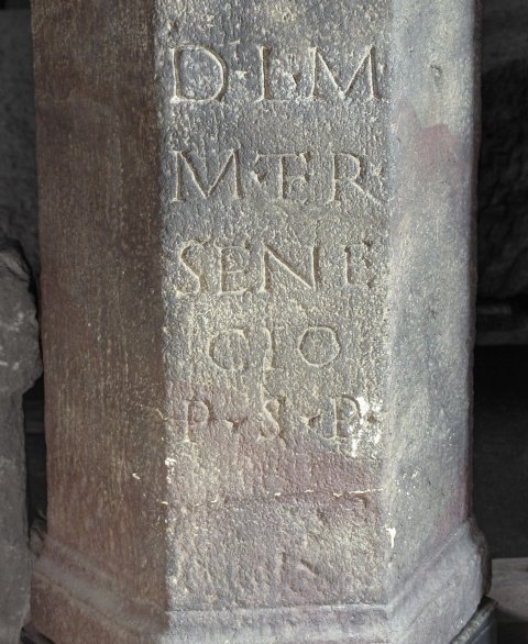 - D(eo) I(nvicto) M(ithrae) / M(arcus) Ter() / Sene/cio / p(ecunia) s(ua) p(osuit)