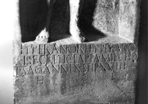 - Hyperanor Hyperano/ris f(ilius) Cretic(us) Lappa mil(es) c(o)ho(rtis) / I sag(ittariorum) ann(orum) LX stip(endiorum) XVIII / h(ic) s(itus) e(st)