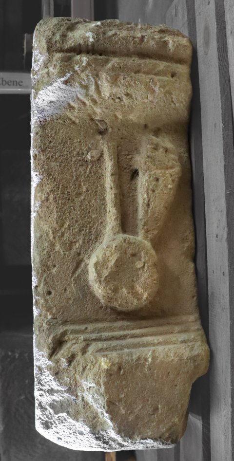 - bestoßen, oberes Profil abgearbeitet, Unserseite verbr.
