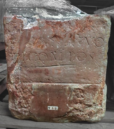 - In h(onorem) d(omus) d(ivinae) / Apollini Tou/tiorigi / L(ucius) Marinius / Marinia/nus |(centurio) leg(ionis) VII / Gem(inae) [[Alexan]]/[[drianae]] vo/ti compos