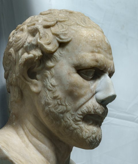 - Historische Person: Porträtkopf des Demosthenes, römische Kopie nach Original von 280 v. Chr.
