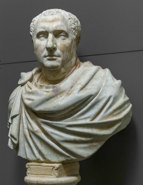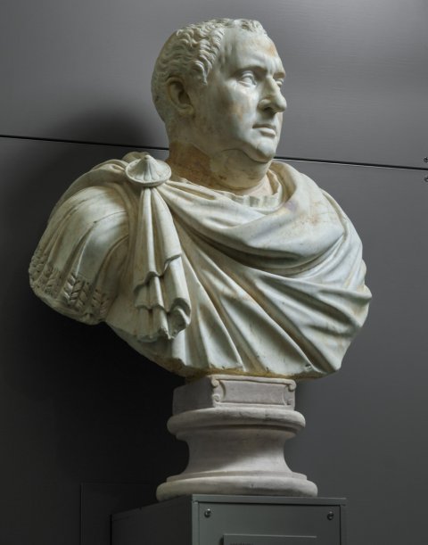 - Büste ergänzt, Kopf im 16. Jh. aus einem antiken Porträt zu Vitellius-Porträt umgearbeitet