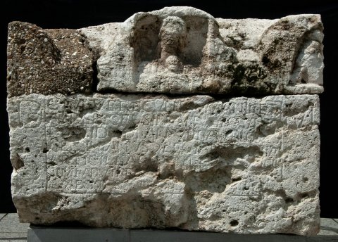 - D(is) M(anibus) // Cla(udium) Verecundum an(norum) III et / Aurel(ium) Celsinianum qui et / Placidium an(norum) VIII Aurelius / Celsinianus |(centurio) leg(ionis) I ad(iutricis) et Ulpia / Atticilla parentes infelicis/simi Arvi reliquias originis / suae sitos comme(n)daverunt