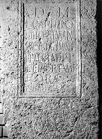 - D(is) M(anibus) / Epaphro/dito alumno / suo T(itus) Statilius Solo / p(rimus)p(ilus) leg(ionis) I ad(iutricis) p(iae) f(idelis) / et Portumia / Flora / griech.: Ἐπαφρόδειτε ἥρως χρηστέ χαῖρε