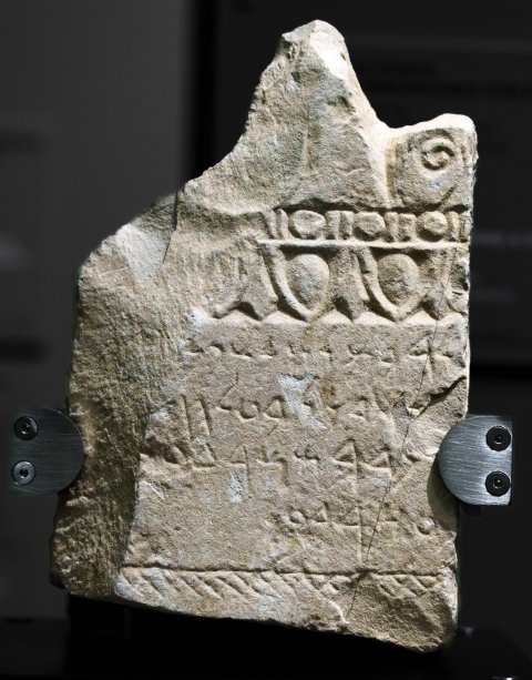 - Stele mit Giebel u. Akroteren, über der Inschrift Eierstab