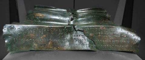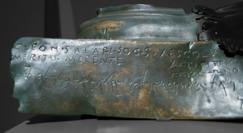 - Cleon salari(orum) soc(iorum) s(ervus) Aescola/pio(!) Merre donum dedit lubens(!) / merito merente(!) //griechisch: Ἀσκληπιῶι Μήρρη ἀνάθεμα βωμὸν ἔστη/σε Κλέων ὁ ἐπὶ τῶν ἁλῶν κατὰ πρόσταγμα // punisch