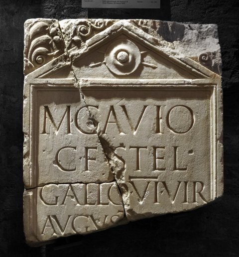 - M(arco) Gavio / C(ai) f(ilio) Stel(latina) / Gallo VIvir(o) / Augu[stali ---] / [---