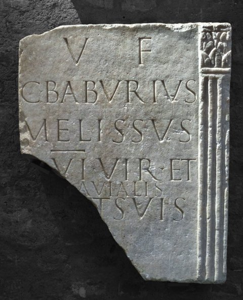 - V(ivus) f(ecit) / C(aius) Baburius / Melissus / VIvir et / [Fl]avialis / [sibi e]t suis