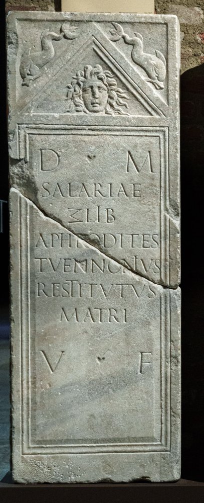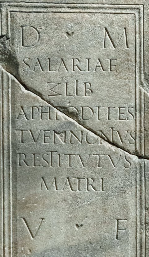 - D(is) M(anibus) / Salariae / |(mulieris) lib(ertae) / Aphrodites / T(itus) Vennonius / Restitutus / matri / v(ivus) f(ecit)