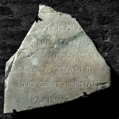 - Au]r(eli) Vindici[s] / qui vixit annis / XXVIII Aur(elius) Senecio / exarc(hus) n(umeri) Delm(atarum)! Divit(ensium) / sing(ularium) contubernali / karissimo / [---