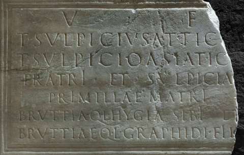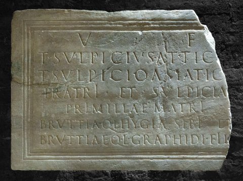 - V(ivus) f(ecit) / T(itus) Sulpicius Attic[us] / T(ito) Sulpicio Asiatic[o] / fratri et Sulpicia[e] / Primillae matri / Bruttia Q(uinti) l(iberta) Hygia sibi et / Bruttiae Q(uinti) l(ibertae) Graphidi fil(iae)