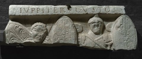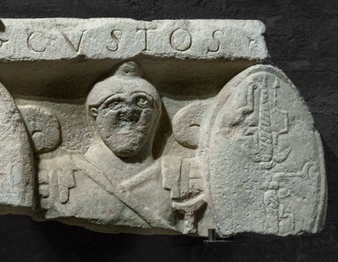 - Fälschung des 16. Jhs. Vom Historiker Filiberto Pingone, 1560-1582 am savoyischen Hof, als römisches Original erworben, 1869 vom Archäologen C. Promis anstelle der Lanzenspitzen mit Eselsohren versehen.