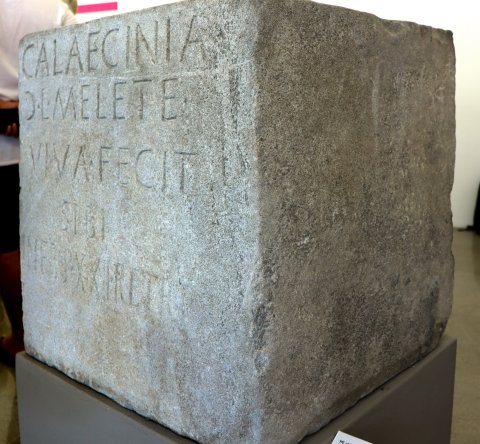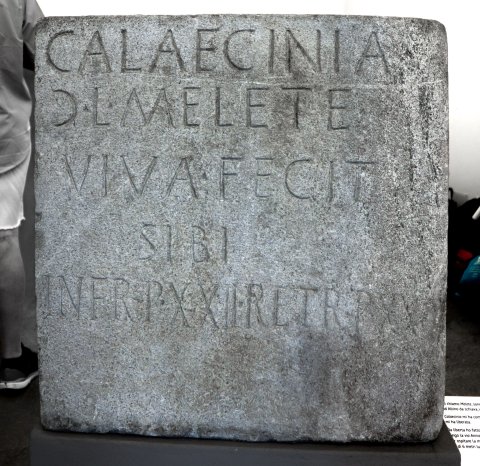 - Calaecinia / |(mulieris) l(iberta) Melete / viva fecit / sibi / in fr(onte) p(edes) XXII retr(o) p(edes) XXX