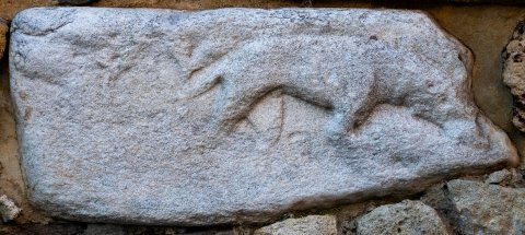 - Tier (Jagdszene ?): Hund mit Halsband.