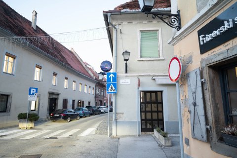 - Eingemauert im Haus an der Ecke Cankarjeva ulica 11 und Vosnjakova ulica.