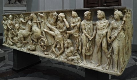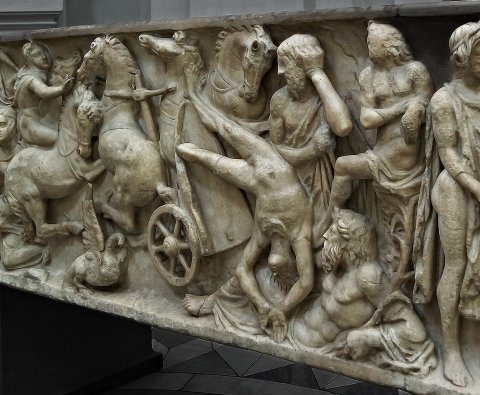 - Mythos: Sturz des Phaeton. Auf der Rückseite Wagenrennen in flachem Relief (sekundär).