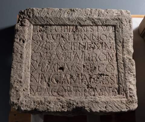 - D(is) M(anibus) // Lictoriae Restut(a)e / quae vixit annos / XXXXI faciendum / curavit Aur(elius) Rom/ulianus b(ene)f(iciarius) co/niugi amantissi/mae ac obsequentissim(a)e