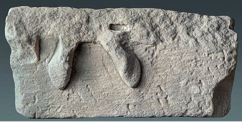 - oben abgebr., Rest der Rückwand des Reliefs und Füße des Mercur erh.