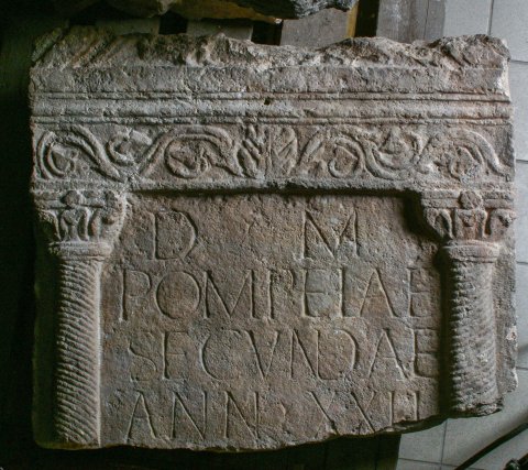 - D(is) M(anibus) / Pompeiae / Secundae / ann(orum) XXII / Q(uintus) Pompeius / Fortunatus / coniugi optimae / [------](?)