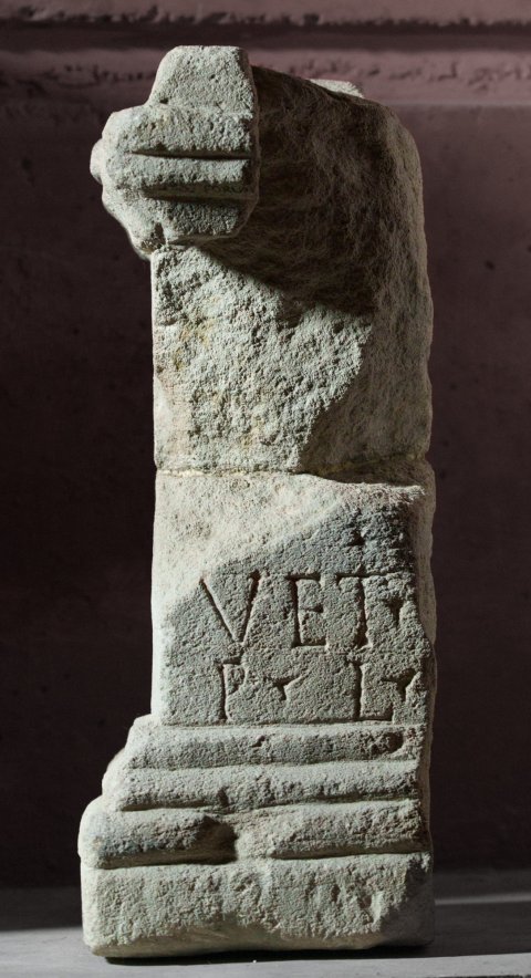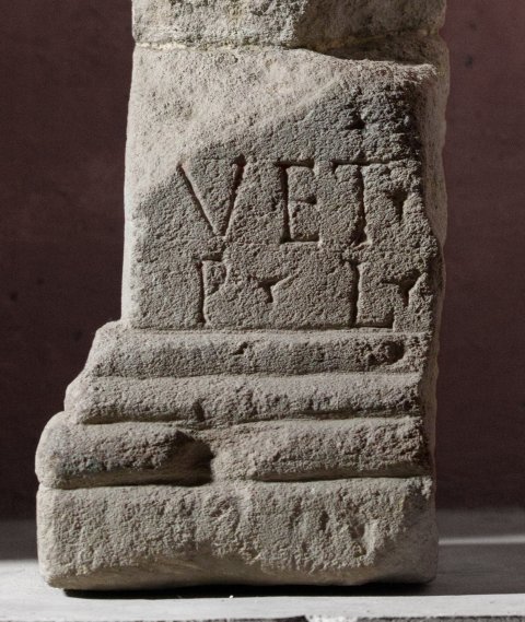 - in 2 Tele gebr., Vorderseite z. gr. T. abgeschlagen, rechte Seite abgearbeitet