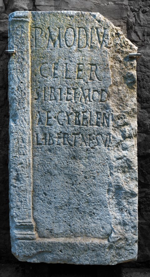 - P(ublius) Modius / Celer / sibi et Mod[i]/ae Cybeleni / libertae sua[e]
