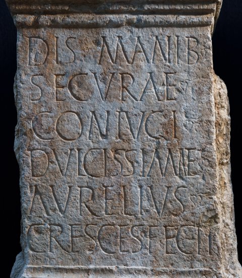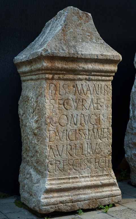 - Dis Manib(us) / Securae / coniugi / dulcissimae / Aurelius / Crescens fecit