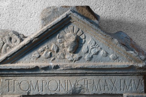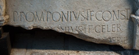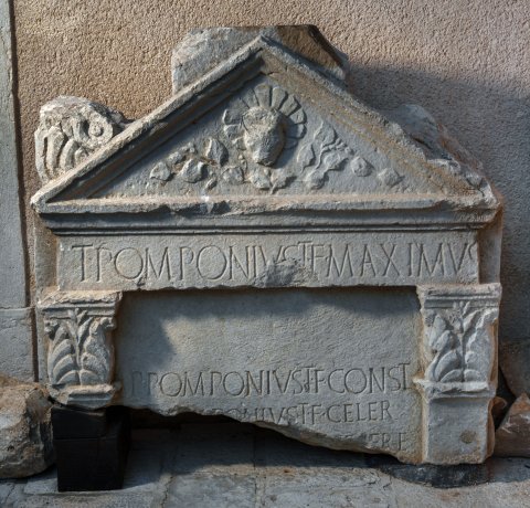 - T(itus) Pomponius T(iti) f(ilius) Maximus // P(ublius) Pomponius T(iti) f(ilius) Const(ans) / [--- Pom]ponius T(iti) f(ilius) Celer / [---] fecere / [---?