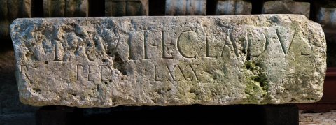 - [---]s [F]lavii l(ibertus) Cladus [---]? / [in f]r(onte) ped(es) LXXXX