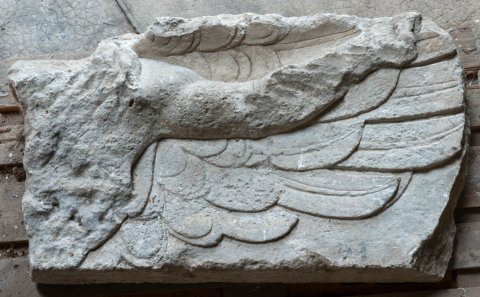 - Mythos: Torsofragment des Ikarus mit ausgestrecktem linken Arm, an dem ein Flügel besfestigt ist.