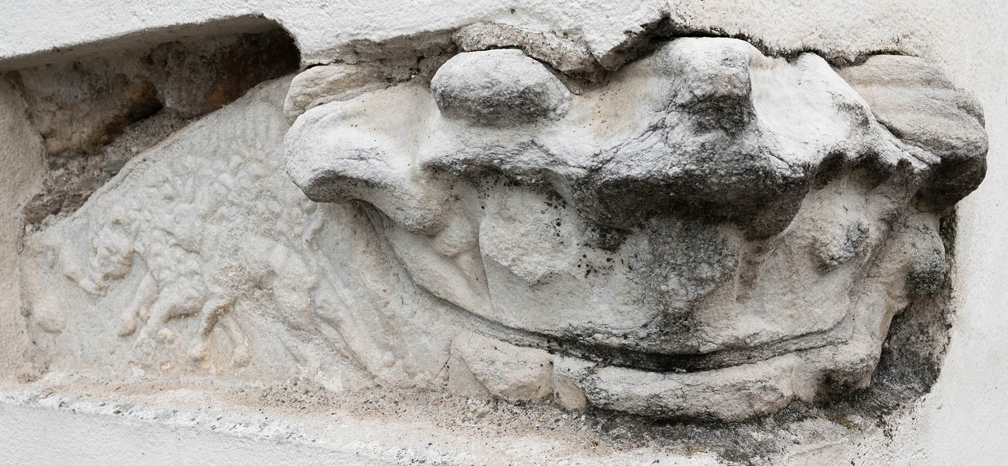 34851 Block aus der Kapitellzone eines Grabbaus mit Jagdszene