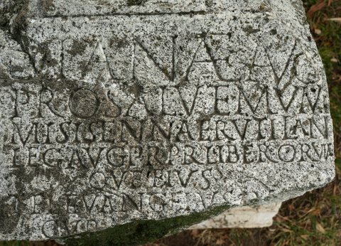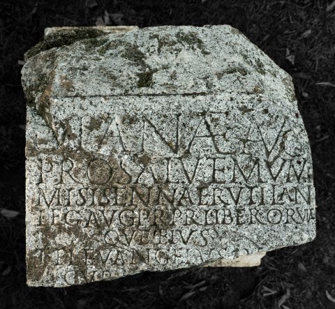 - Dianae Aug(ustae) / pro salute Mum/mi Sisennae Rutiliani / leg(ati) Aug(usti) pr(o) pr(aetore) liberorum/que eius / T(itus) Fl(avius) Euangelus Aug(ustalis) col(oniae) / curat(or) praet(orii) eius
