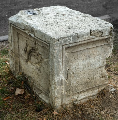 - Aesculapio / Ratiar(iensi) aedem / statuam [-]CV[---] / iussit Hygia Do[---] / ex HS [---] / Antonius P[---] / [---] HS III