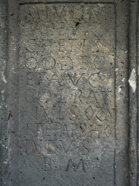 - D(is) M(anibus) // M(arci) Iuli M(arci) l(iberti) / Pap(iria) Euty/chetis / o(rnato) o(rnamentis) dec(urionalibus) / et Aug(ustali) / col(oniae) Rat(iariae) / Iul(i) Sozon / et Epaprho/ditus(!) b(ene) m(erenti)
